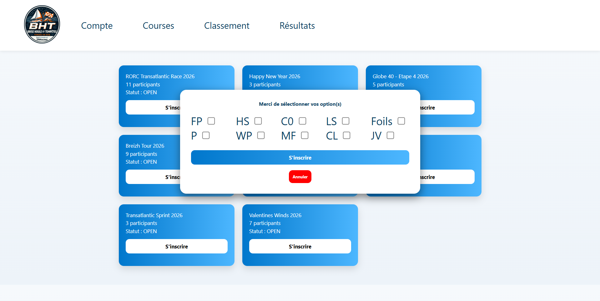 joueurs de s'inscrire aux courses disponibles et d'enregistrer leur
