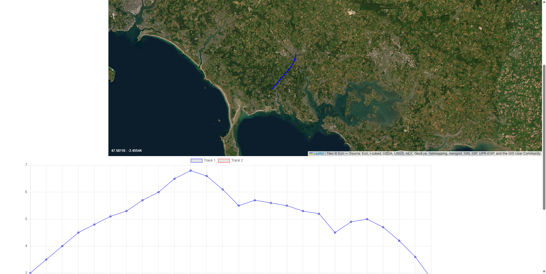des navigations sont affichés sur une carte Leaflet.js pour comparer les routes.