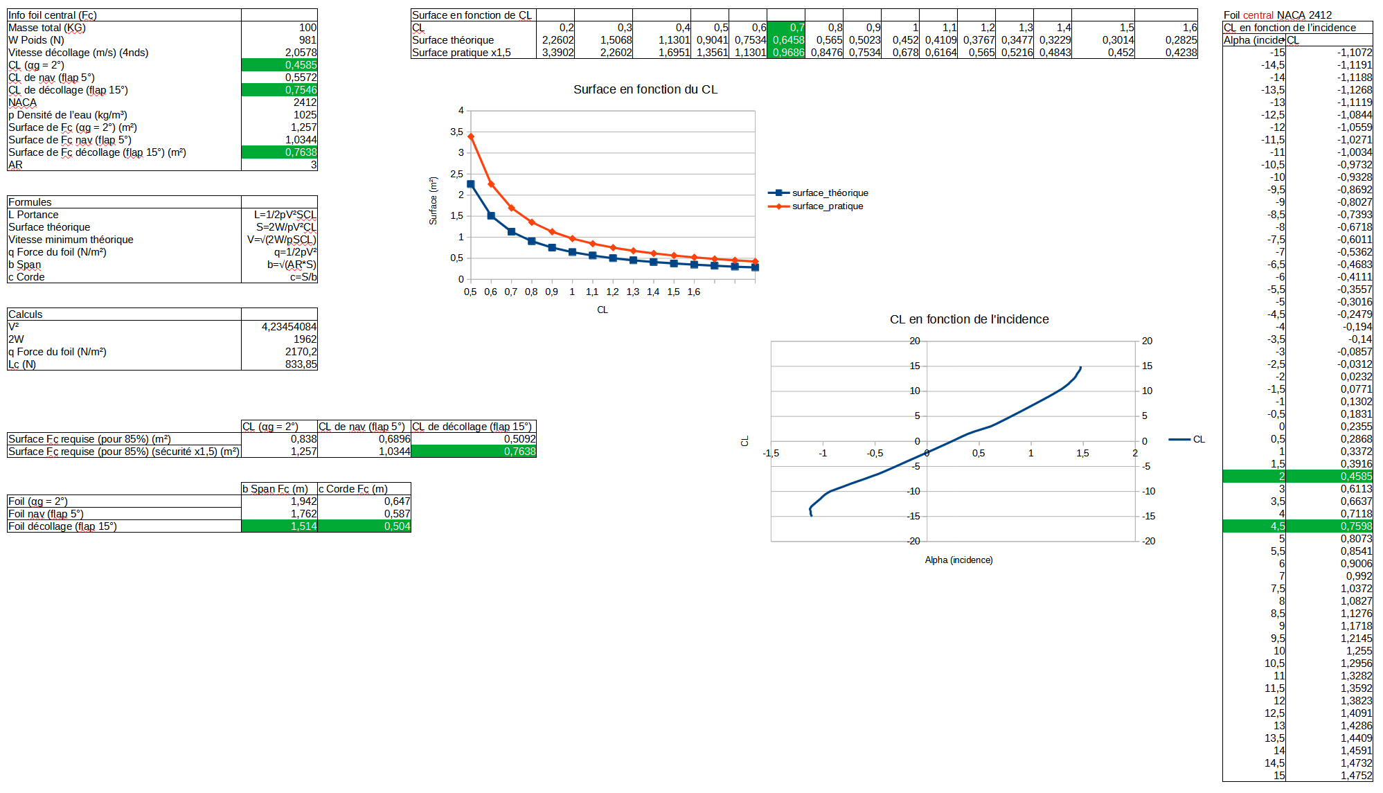 Calculs du foil central