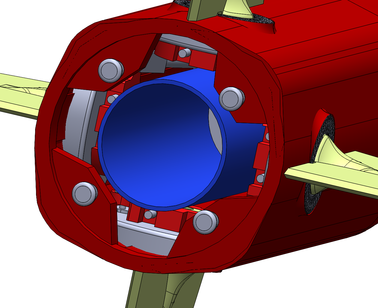 d'ailerons sur des roulements à billes qui limite au maximum le jeu.