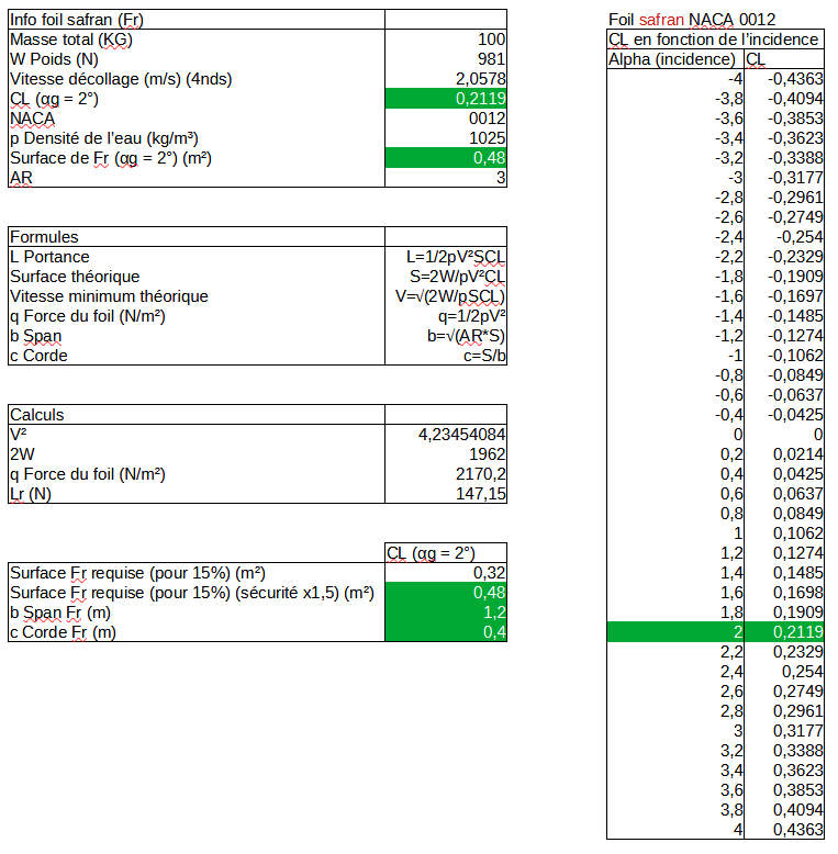 Calculs du foil central